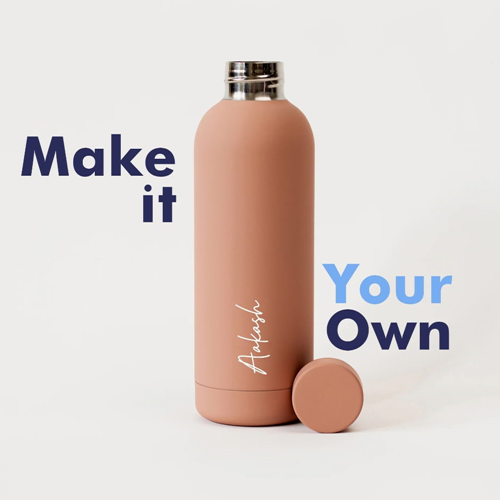 This vacuum-insulated drink bottle has a luxurious, matte finish and a strong, double-walled stainless steel design allowing you to take your hydration partner with you wherever you go. Our bottle is shatterproof, condensation-free, and has a sturdy screw-top lid, making it more than just a pretty accessory. Make it perfect by personalising your accessory to keep you hydrated everywhere